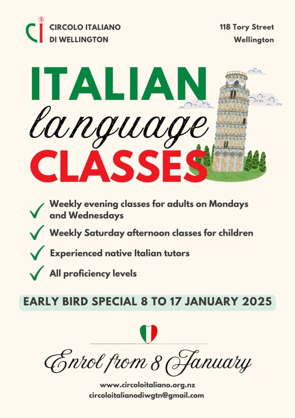 Enrolment opens 8 January. All you need to do to receive the grant is chose Club Garibaldo Member under the Membership drop-down you sign up for classes on The Circolo Italiano di Wellington website.
