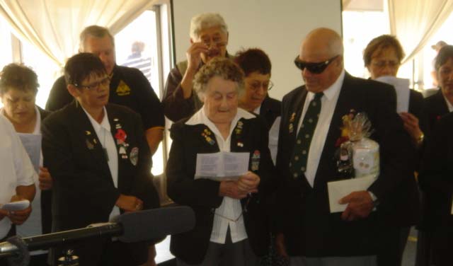 28th Maori Battalion Veteran John Thomas, his wife Maureen with support group