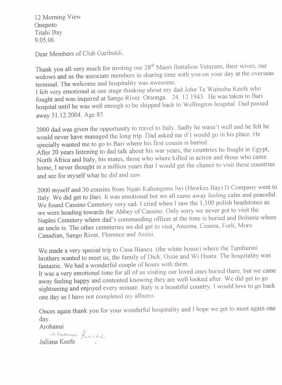 Letter to Club Garibaldi