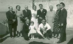 Luigi Dellabarca and Caterina (Tina) De Gregorio were married at Santa Maria della Lobra, Marina di Massalubrense, Italy, on 10 October 1953. Back left: Capitano, Nina De Gregorio, Luigi De Gregorio (father of bride), Tina De Gregorio (bride), Luigi Dellabarca (groom), Assunta De Gregorio (mother of bride), Geni De Gregorio, Salvi De Gregorio. Front left: Antonino De Gregorio, Assunta De Gregorio and Pasquale De Gregorio.