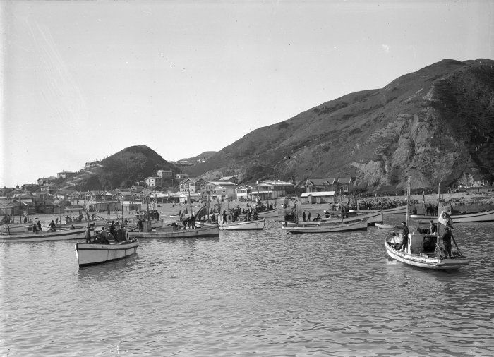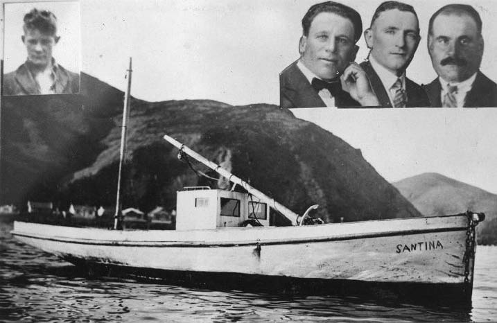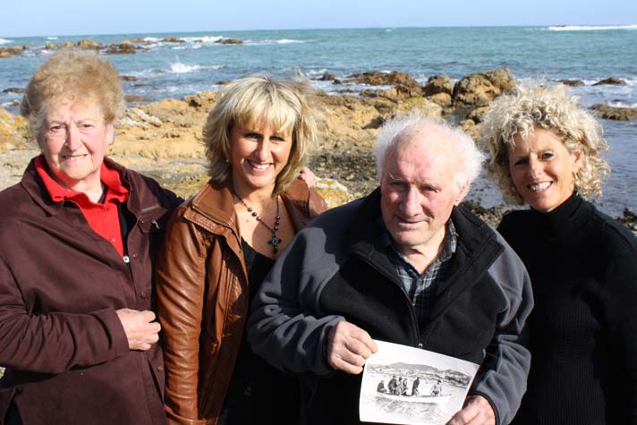 FISHERMAN'S DESCENDANTS: Mattia Amitrano holds a picture of fishermen among whom his dad Gennaro, on the right side of the dinghy, disappeared at sea after leaving Island Bay on the Santina in 1933. Pictured with him are his wife Emma Amitrano (left), and daughters Annalisa (second from left) and Ida (right).